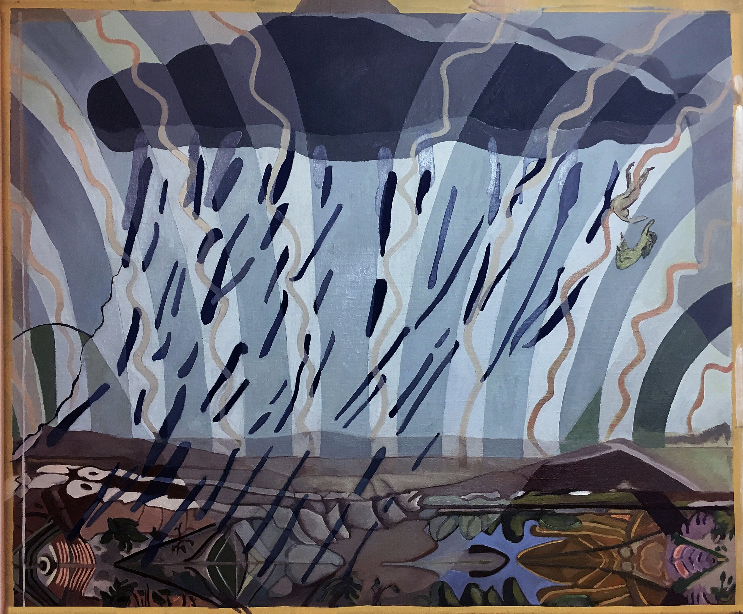 ‘How The Oyster Makes The Pearl’ is composed of 8 paintings for walls, floors and tables. It presents the world translucently in a careful matrix of tone, opacity and colour. While framed, stuffed or folded like things we intend to keep safe and admire forever, Shiel's flat vanishing spaces are already evanescing. They reveal the shape-shifting dimensions of a sentient landscape, in which reflections abandon their hosts, horizons up-sticks from their axis, gestural marks pose wilfuly and light plays tricks before disappearing. Installation Shots: Kevin Kavanagh Gallery, Dublin, 2019. Supported by The Arts Council and DCC Visual Artist Bursary Awards, 2018.