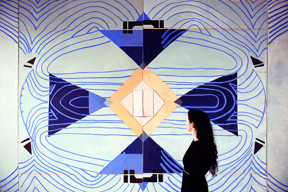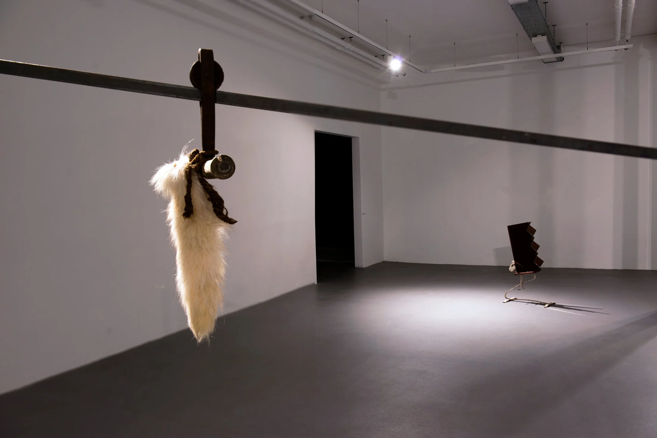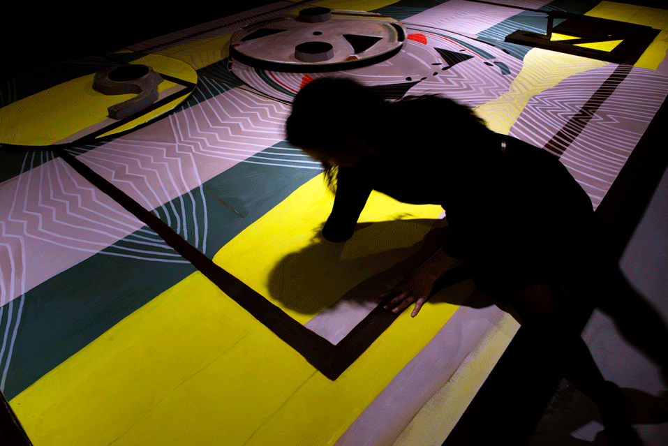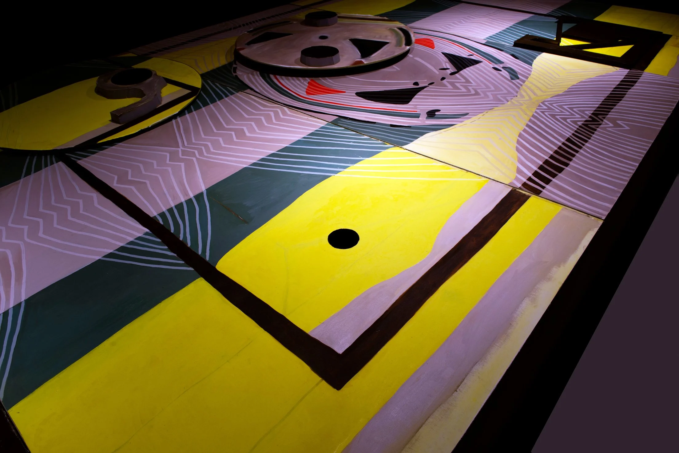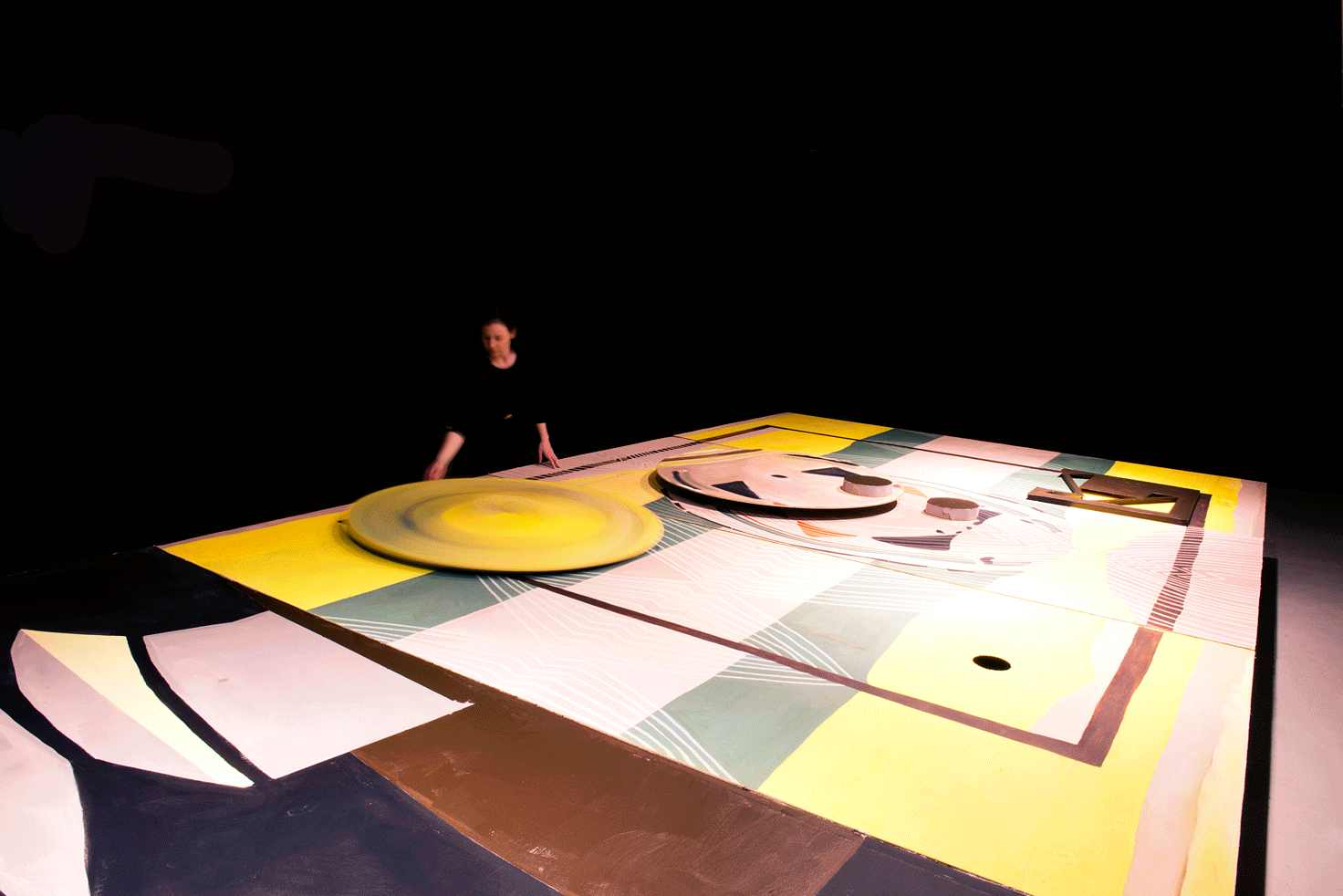 In ‘The Middle’ the viewer is compelled to move through the space by a series of scripted audio-visual instructions, staged objects and obtuse props that feign seemingly ungovernable chances in a shape-shifting journey.