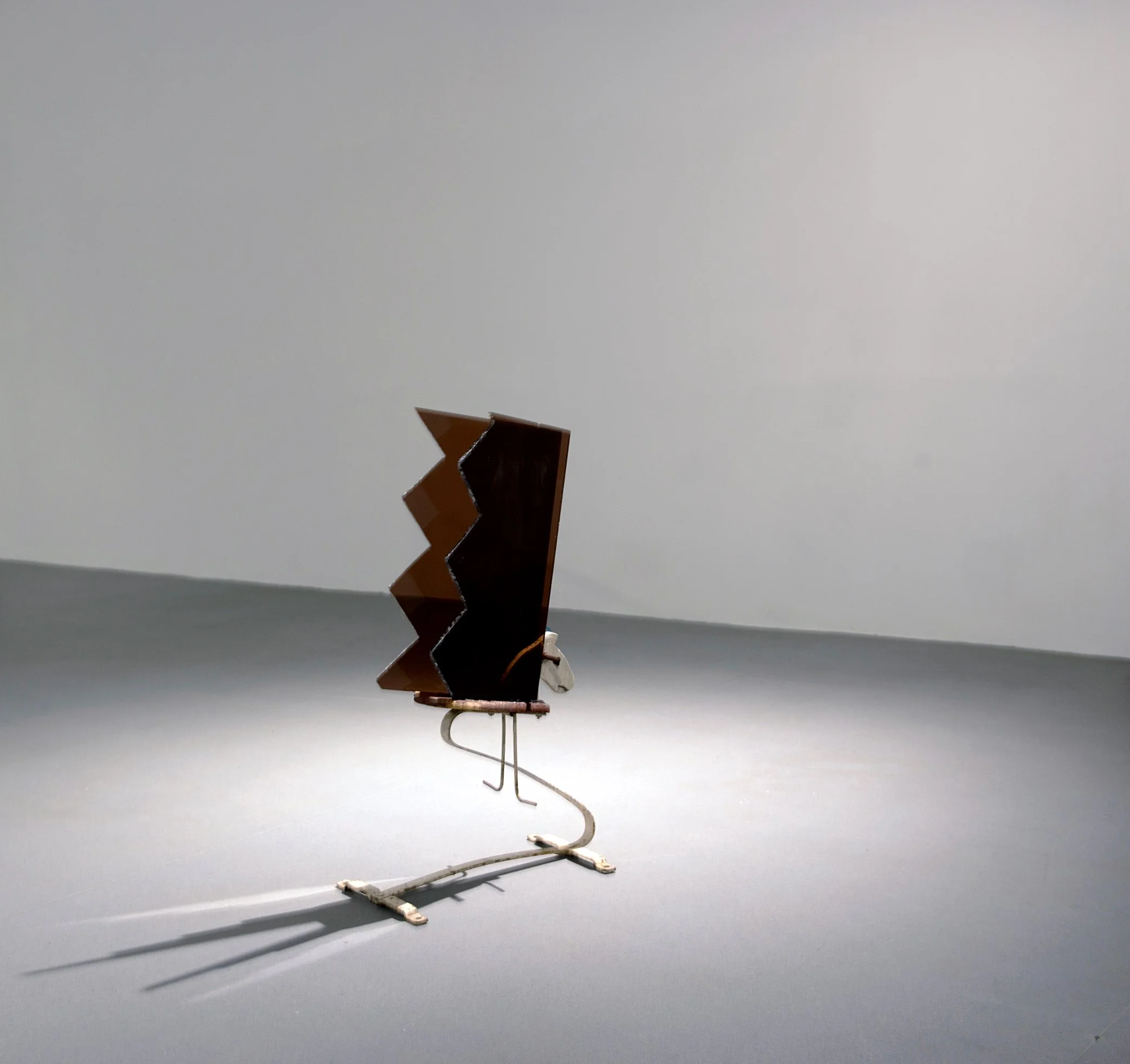 Taking the audience on a tour through the exhibition, Three Words – is a performance piece made up of charade-like sketches between the artwork and its fictional maker as they journey through the landscapes-cum-chapters of the exhibition in search of an alternative reading of the works. Among other things, Shiel’s folie à deux thrashes between form and façade, sculpture and prop, dialogue and monologue to explore the veracity of creative intent, the indeterminacy of meaning, and the sound that circles make as soon as they are born. See transcript below.
